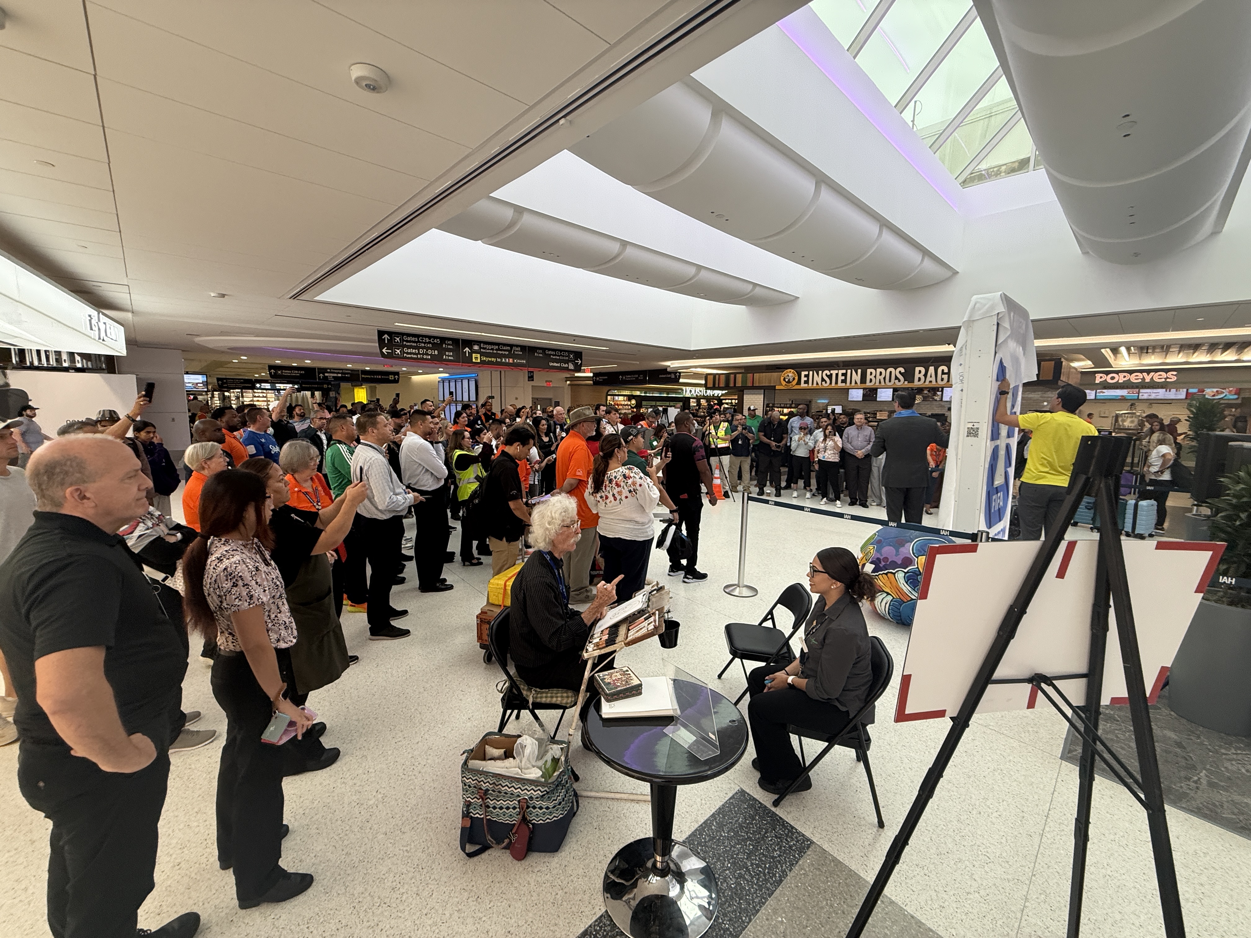 At IAH, the send-off was personal. Volunteers, airline staff and airport employees lined the gate area. TSA officers stopped for photos. Ramp crews waved from outside. Therapy dogs met families at every turn, offering comfort in a moment charged with emotion.