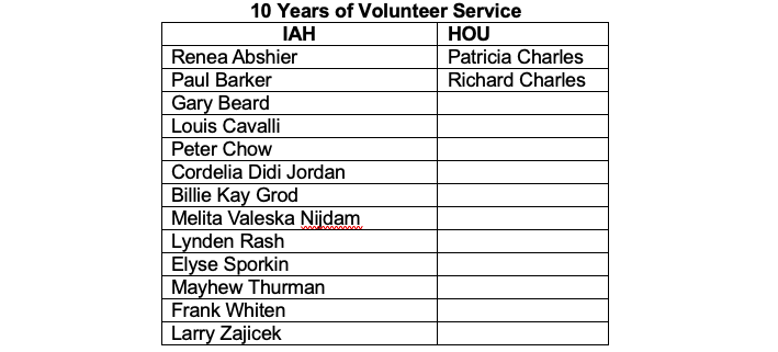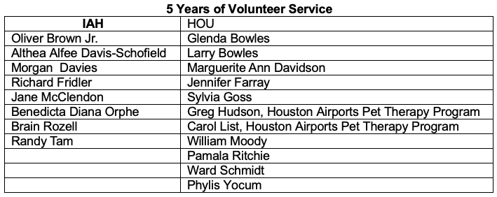 “Milestones mattered, but the message was broader,” said Ella Ghica, manager of volunteer programs for Houston Airports. “Every volunteer plays a role in making our airports feel organized, functional and welcoming.”