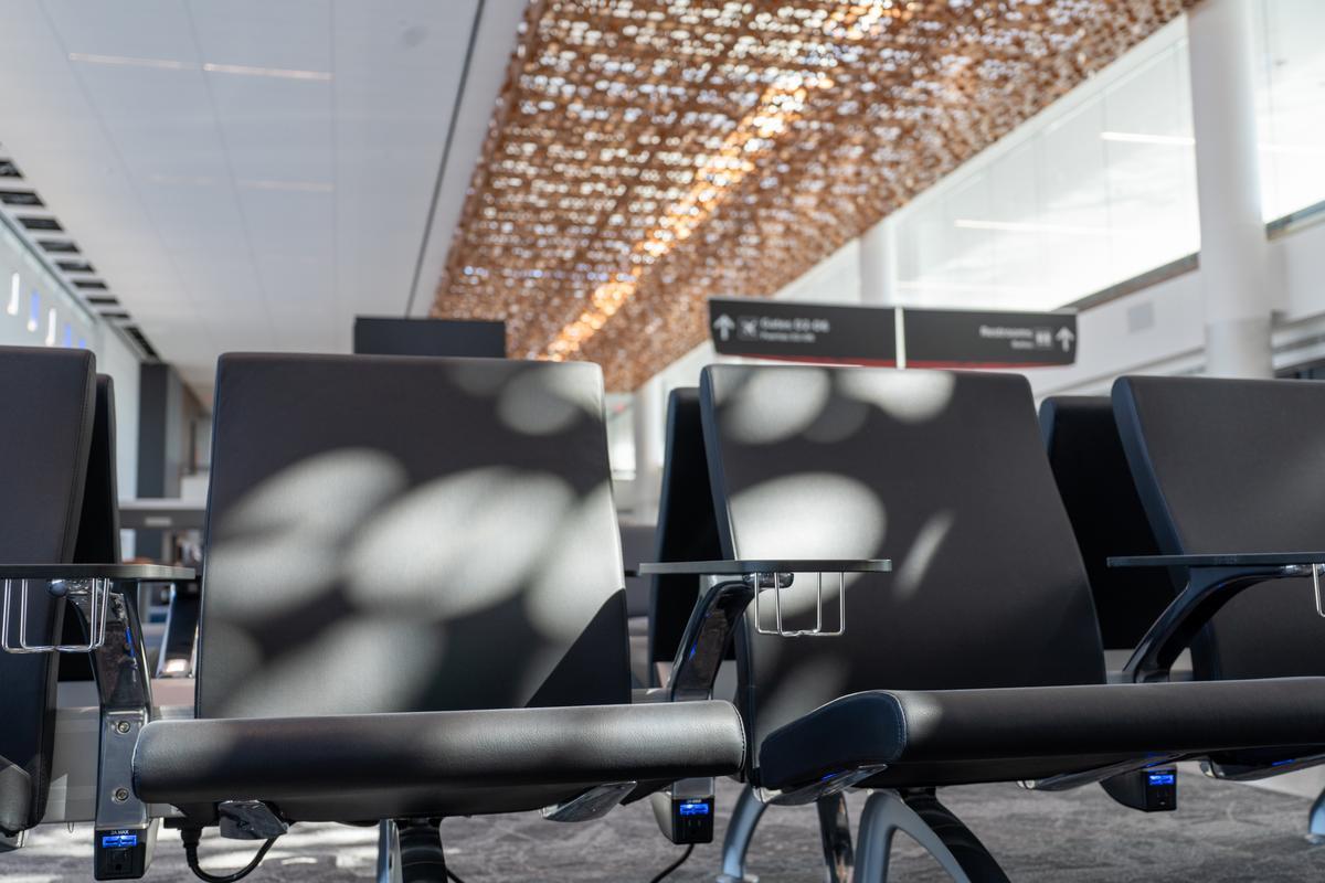 Terminal D now has more seating, open space, and natural light-giving you room to breathe and charge up before your flight.
